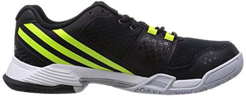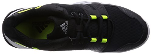 Adidas Volleyballschuhe Volley Team 3. Obermaterial für beste Abriebfestigkeit im Zehenbereich. Mittelsohle: adiPRENE®+ für dynamische Vorfußdämpfung. AdiPRENE+ für ein leichtes und gedämpftes Tragegefühl. Obermaterial aus zweilagigem Air-Mesh für maximale Atmungsaktivität. Synthetik-Overlays für mehr Halt. ADIPRENE®+ im Vorfußbereich für ein dynamisches und effizientes Abstoßen. Dämpfende Zwischensohle. ADIPRENE® im Fersenbereich für optimale Aufpralldämpfung, um 15° abgeschrägter Fersenbereich. Abriebfeste NON MARKING Gummiaußensohle. SYNTHETICS/TEXTILE. Farbe: schwarz/grau/gelb. Logos: adiTUFF_TM, core.