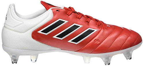 Outshine and outclass in every game on every pitch in the Copa 17.2 SG Football Boots in Red, Core Black and White from adidas.Coming from adidas' Red Limit Pack, the Copa 17 Collection are inspired by one of the best selling and most iconic boots of all time, the adidas Copa Mundial.The Copa 17 boots have been created in stages to offer the wearer the ultimate comfort with an engineered fit. The front of the boot is made from k-leather offering a lightweight feel and more control when you make contact with the ball. The area around the heel is made from a leather like synthetic for greater stability and secure fit. The soleplate of these boots come with 11 conical studs aligned in a classic set-up, as well as an arch in the midfoot area for increased stability. Optimised for soft ground pitches, they have a combination of moulded and removable metal studs for greater traction in tricky conditions. Outshine and outclass in every game on every pitch with these adidas Copa 17.2 SG Football Boots.