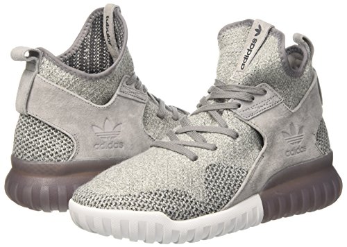 adidas Originals Tubular X Primeknit – graue Trendsneaker Angereichert mit einer ordentlichen Portion futuristischem Pop und trendigem Materialmix, entspringt der Tubular X PK der Vorlage des berühmten Forum Mid. Das gewobene Obermaterial wird von Wildleder-Overlays in zeitlosem Grau unterstützt und kommt wie gewohnt in sockenähnlicher Form, in das du unkompliziert hineinschlüpfen kannst. Der luftige Webstoff lässt allerhand frische Brisen hinein, um deine Füße maximal klimatisiert zu halten. Die Grundlage der adidas-Sneaker bildet die halbtransparente Laufsohle in Form eines Schlauches (Tubes) und erklärt nebenbei auch gleich den Namen des Sportschuhs. Bequemer und leichter kann man kaum von A nach B laufen!
