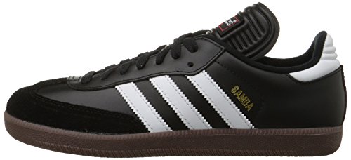 Adidas Samba Classic features a mixture of smooth and suede upper. The black hue of this fashion sneaker is contrasting against three white, side stripes. Adidas logo can be found on the textured tongue. The inside of this men's trainer is lined with breathable textile which has been brushed for the soft comfort. The insole is removable and easy to clean, helping to maintain the healthy inner climate. Samba Classic has been enhanced with gum rubber outsole which will make you benefit from superior traction on any surface. This low top, athletic footwear proofs that perfection never goes out of style.