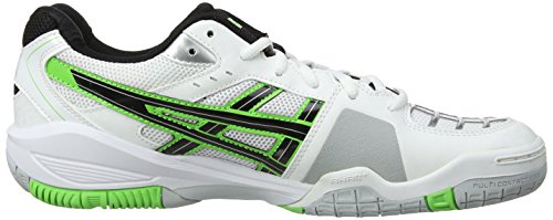 Der GEL-BLADE 4 ist ein High-Tech-Schuh, der exklusiv für die schnellen Indoor-Sportarten Squash und Badminton entwickelt wurde. Der Schuh ist für schnelle und wendige Spieler konzipiert, besitzt ein Low-Cut-Design und eine hohe Reaktionsfähigkeit. Ein Squashprofi, der den GEL-BLADE 4 getestet hat, sagte über den Schuh, er sei „der schnellste und bequemste Squashschuh, den ich je getragen habe“. In dieser Edition sind neue PIVOT-Drehpunkte und neue Flexkerben in der Außensohle integriert. Diese teilen den mittleren und seitlichen Fußbettbereich am Vorfuß und unterstützen effizientere und aggressivere Drehungen und Seitwärtsbewegungen. Die Transition-Midsole unterstützt schnelle Richtungswechsel, während der zentralere und abgerundete Fersenbereich auf abrupte Bewegungen ausgelegt ist. Die Außensohle aus Wet Grip-Rubber erhöht den Bodenkontakt auf Indoor-Belägen, wobei ein großer PIVOT-Drehpunkt im Vorfußbereich einfachere und schnellere Drehbewegungen ermöglicht. Die MAGIC SOLE-Konstruktion sorgt für Atmungsaktivität. Im Obermaterial sorgt das TPU-geschützte Blatt für Unterstützung und Strapazierfähigkeit, während das Personal Heel Fit-Innenfutter und die asymmetrische Schnürung für eine komfortable, individualisierte Passform sorgen.