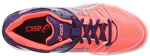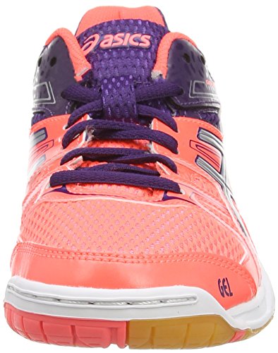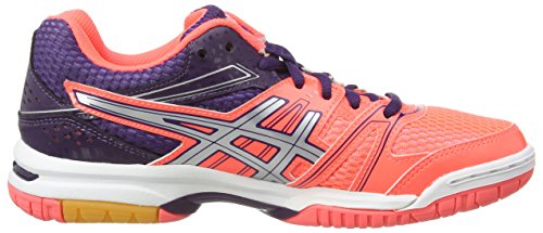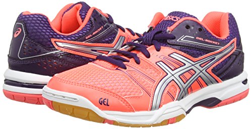 ASICS GEL-ROCKET 7. Stabiler, gut gedämpfter Damen-Volleyballschuh aus Mesh, mit stützenden Synthetikoverlays, EVA-Mittelsohle mit GELTM Dämpfung im Vorfuß für besten Support beim Training und Wettkampfspielen. Die rutschfeste, nicht abfärbende Indoor-Gummisohle mit Drehpunkt am Vorfuß hinterlässt keine Spuren auf dem Hallenboden, aber dank der Mittelfußstütze ein Gefühl von Sicherheit bei der Trägerin.