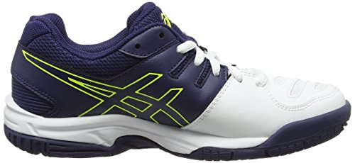 Asics Unisex-Kinder Gel-Game 5 GS Tennisschuhe, Weiß (White/Indigo Blue/Safety Yellow), 34.5 EU