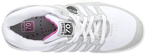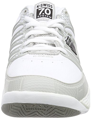 Dieser leichte und komfortable Outdoor-Schuh ist mit einer unverwüstlichen Fischgrät-Gummisohle ausgestattet, die dank Fischgrätprofil für optimales Rutschverhalten auf Sandplätzen sorgt. Den Mittelfuß trägt eine spezielle Schalenssohle, während eine hochwertige Dämpfung den Fersenbereich schützt. Die Innensohle gewährleistet mit antibakteriellen Eigenschaften hohe Schweißabsorption für trockene Füße und minimalen Hitzestau. Auch gegen Abrieb ist der K-Swiss Defier Men bestens geschützt – die Vorderkappe aus Helcore kommt doppelt verstärkt und Seitenstabilität verleiht eine robuste Torsionsplatte. * Obermaterial: Synthetik, Leder und Mesh * EVA Schalensohle für Komfort und Dämpfung für mehr Tragekomfort: EVA ist ein mikrozellenförmiges Sohlenmaterial, leichter und flexibler als Gummi. Es wirkt zugleich dämpfend * Herausnehmbarer Ortholite-Innensohle mit hoher Schweißabsorption und antibakteriellen Eigenschaften für trockene Füße und minimalen Hitzestau * Spürbarer Dämpfungstechnologie im Fersenbereich * K•SWISS-Schriftzug an der Ferse * K•SWISS-Shield auf der Außenseite angebracht * Doppelt verstärkte Vorderkappe aus Helcore zum Schutz gegen Abrieb * Aösta 7.0®: Abriebfeste Gummisohle für unübertroffene Langlebigkeit von der Ferse bis zur Fußspitze. * All-Court Profil = für alle Außenbeläge geeignet