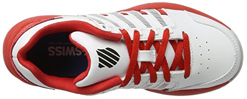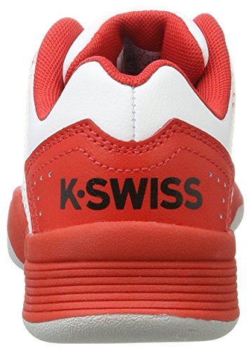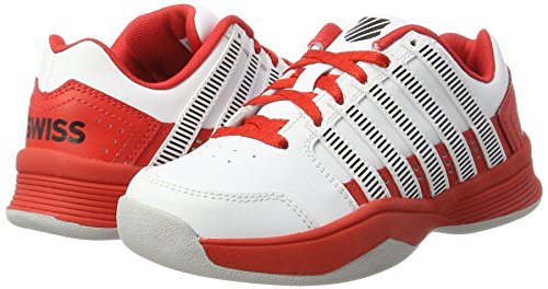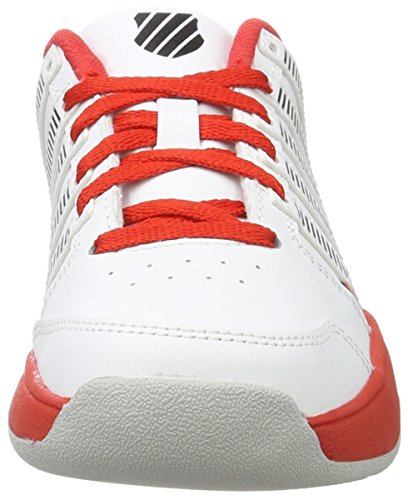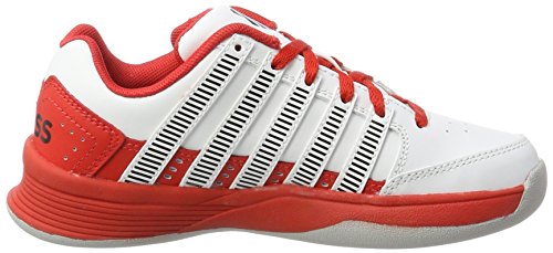 K-Swiss COURT IMPACT. Atmungsaktive Tennisschuhe für Kinder, aus robustem Leder und Kunstleder; perforiertes Obermaterial für angenehme Belüftung; vorgeformte Gummilaufsohle und CUT-EVA-Einlegesohle für hohen Tragekomfort und angenehme Dämpfung; Material Leder, Kunstleder, Gummi.