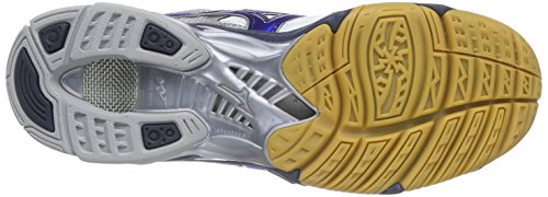 Die Mizuno Parallel Wave Platte bietet dynamische Dämpfung und Agilität. Die überarbeitete Sohle mit Dynamotion Fit Grooves bietet noch bessere Performance auf dem Hallenboden. Die VS-1 Mittelsohle in Kombination mit der herausnehmbaren Einlegesohle absorbieren Sprünge, sorgen für beste Dämpfung und somit für noch mehr Komfort. Im vorderen Bereich befindet sich ein spezieller Bügel zum Schutz der Zehen.