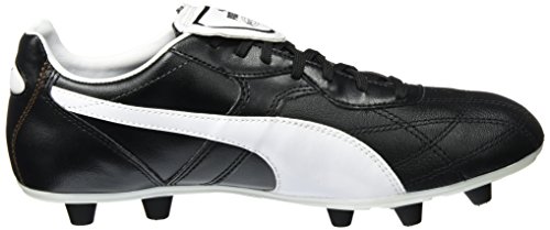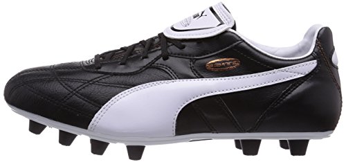 Official Puma Esito Classico Firm Ground Football Boots available to buy in mens adult sizes 6, 6.5, 7, 7.5, 8, 8.5, 9, 9.5, 10, 10.5, 11, 12, 13.Featuring a full grain leather upper that moulds to the natural contours of the foot, the Puma Esito Classico FG football boots deliver a comfortable fit and natural ball touch.Central lacing and a classic fold over tongue enhance the traditional look and add to the comfort while an internal heel counter offers protection around the achilles. A lightweight and durable PU injected outsole includes a moulded conical stud configuration for even pressure distribution, maximum stability and reactivity on firm ground. Product Code 10333601