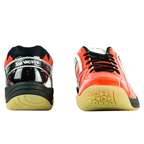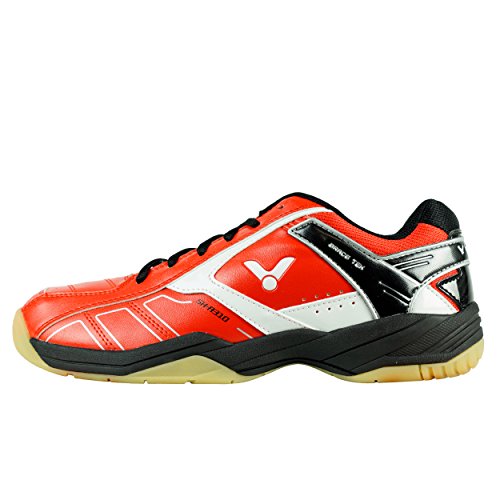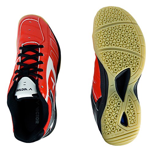 Erstklassiger Indoor Schuh mit schmaler Passform. Die enger geschnittene Passform des VICTOR SH-A310 ist ideal für Spieler, die auf der Suche nach einem schmalen und hochwertigen Sportschuh sind. Durch die komfortable Innenpolsterung bietet der Schuh von Beginn an ein tolles Tragegefühl. Die BRACE TEK Technologie sorgt für den nötigen Halt im Schuh. Der weiche EVA ENERGYMAX Schaumkern im Fersenbereich federt die Rückstöße in der Bewegung ab. Den geforderten Grip auf dem Court erhält der Schuh dank seiner speziellen sternförmigen Außenstruktur der Sohle.
